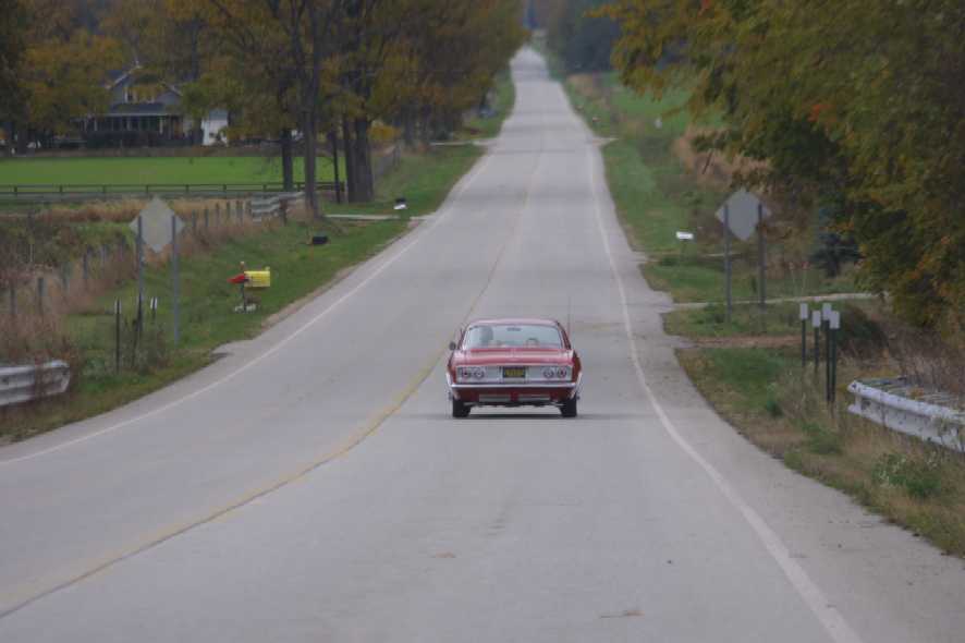 I got up early Saturday morning and drove to St. Johns in the hope that they could squeeze in a quick alignment. They were booked solid until next Tuesday, but the Midas across the street was open and strangely empty of customers. Any port in a storm.... I got it aligned to the '67 Corvair spec they had on their computer, and the handling was much better, although still pretty quirky on the freeway.
