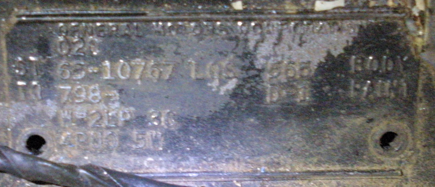 I apologize for the file size of the photos on this page, but I wanted to retain as much of the detail as possible; as you can see these are not the easiest to read. Unfortunately, I appear to have not photographed the last line of the Monza's plate (blocked by the wiring harness), and the car is now gone. Information on this page was complied in part with the help of information provided by Rad Davis, Bill Hubbell and David Trull.