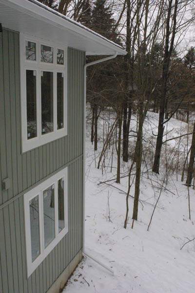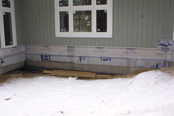 The first step of installing the cultured stone on the front of the house is putting up mesh.