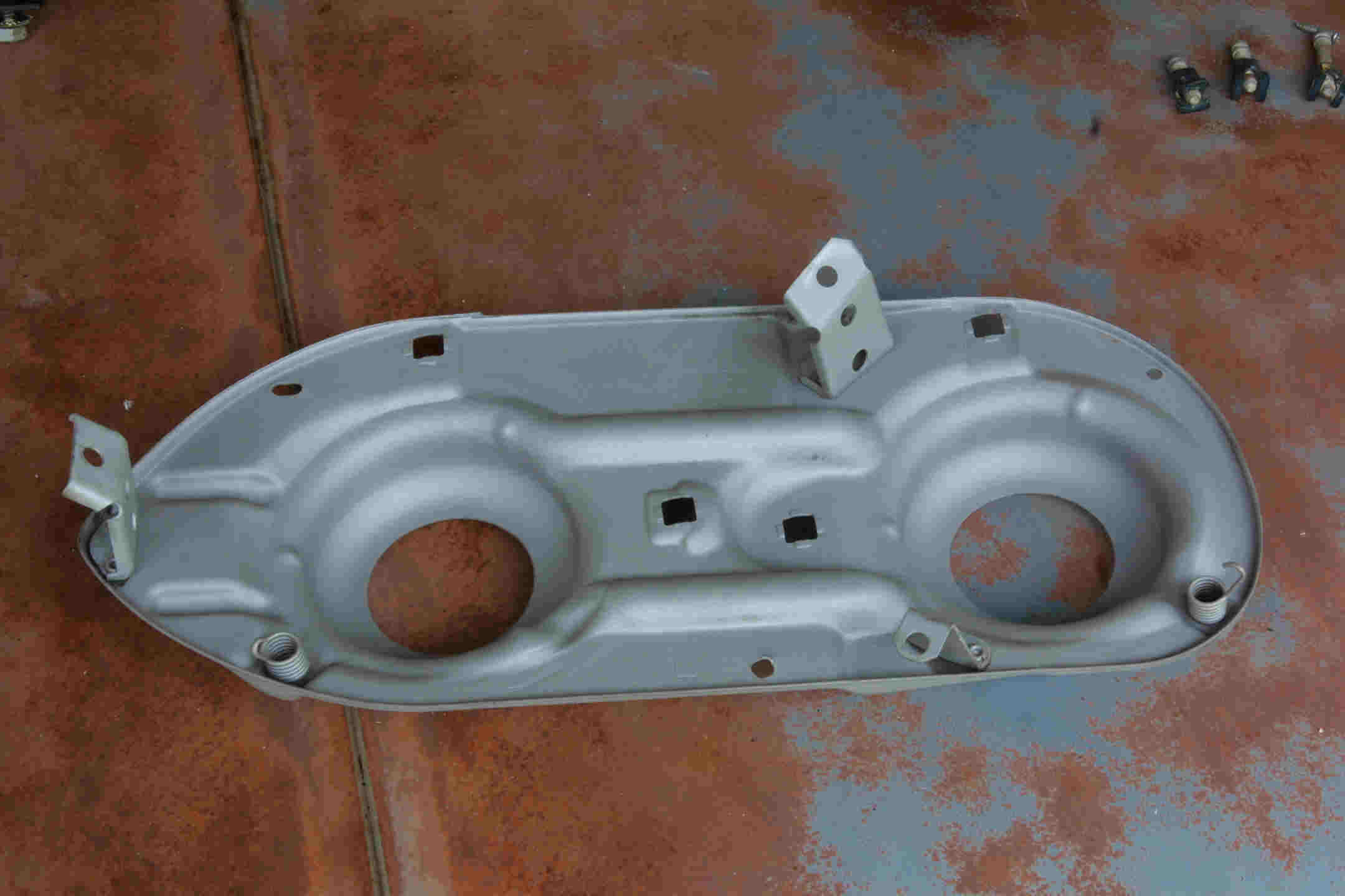 My next task was to remove the plates to which the headlights mount. I tried cleaning these up, but I really wasn't too satisfied with how they came out. I decided that the best course was to sandblast and paint them. Here's the sandblasted part:
